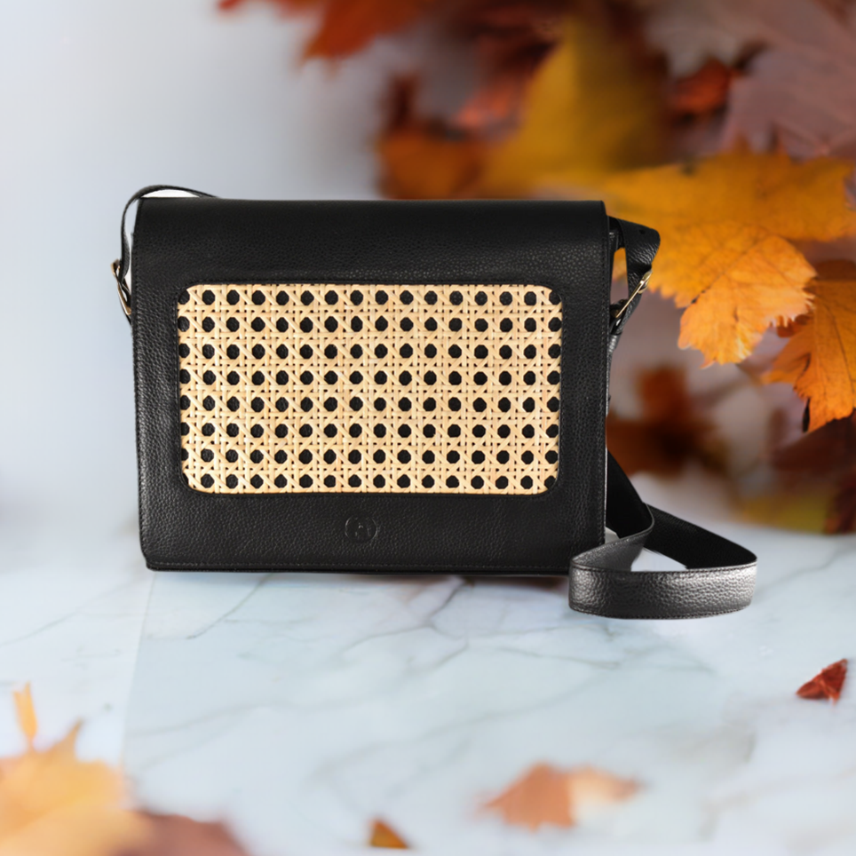 Inspired by the glossy black birds that blanket the morning skies from the low desert to cities to mountaintops, Säkra in black is fearless on the outside with premium leather and rattan detail.